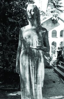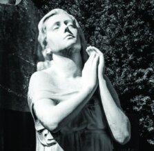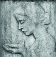 Pertanto è del 1946 la tomba Rovari: una fanciulla inginocchiata prega.