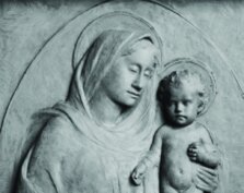 mostra Maria che trattiene dolcemente con le mani il corpo paffutello del Bambino.