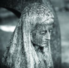 Il volto è rivolto al cielo, le palpebre sono abbassate