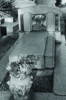 Il Monumentale, museo a cielo aperto, accoglie le spoglie dell’artista nel reparto dei Benemeriti della città.