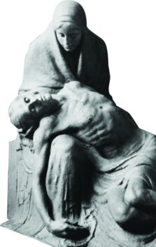 Maria tiene morbidamente tra le braccia il corpo privo di vita di Gesù.